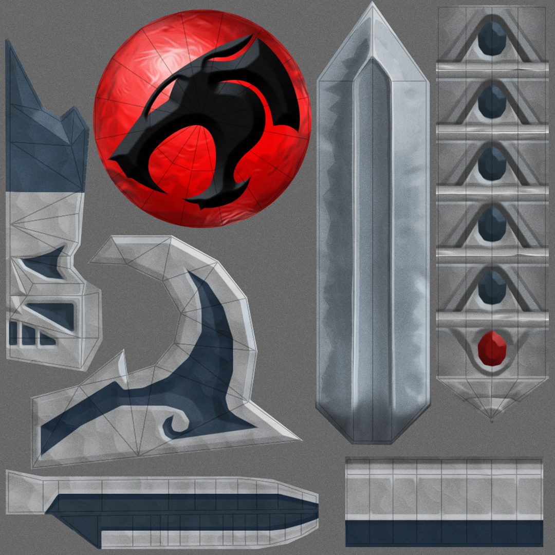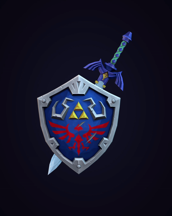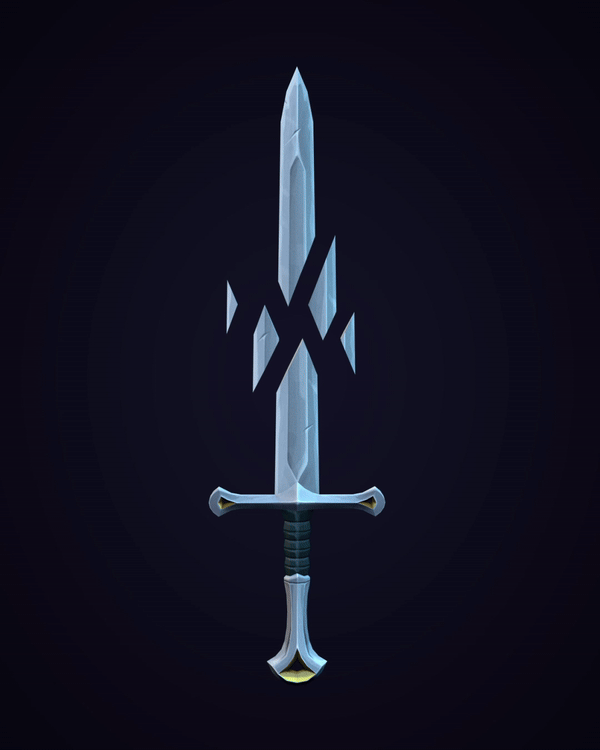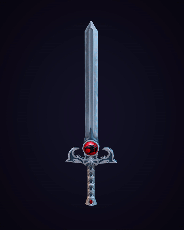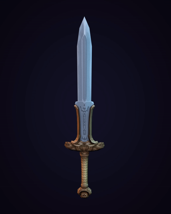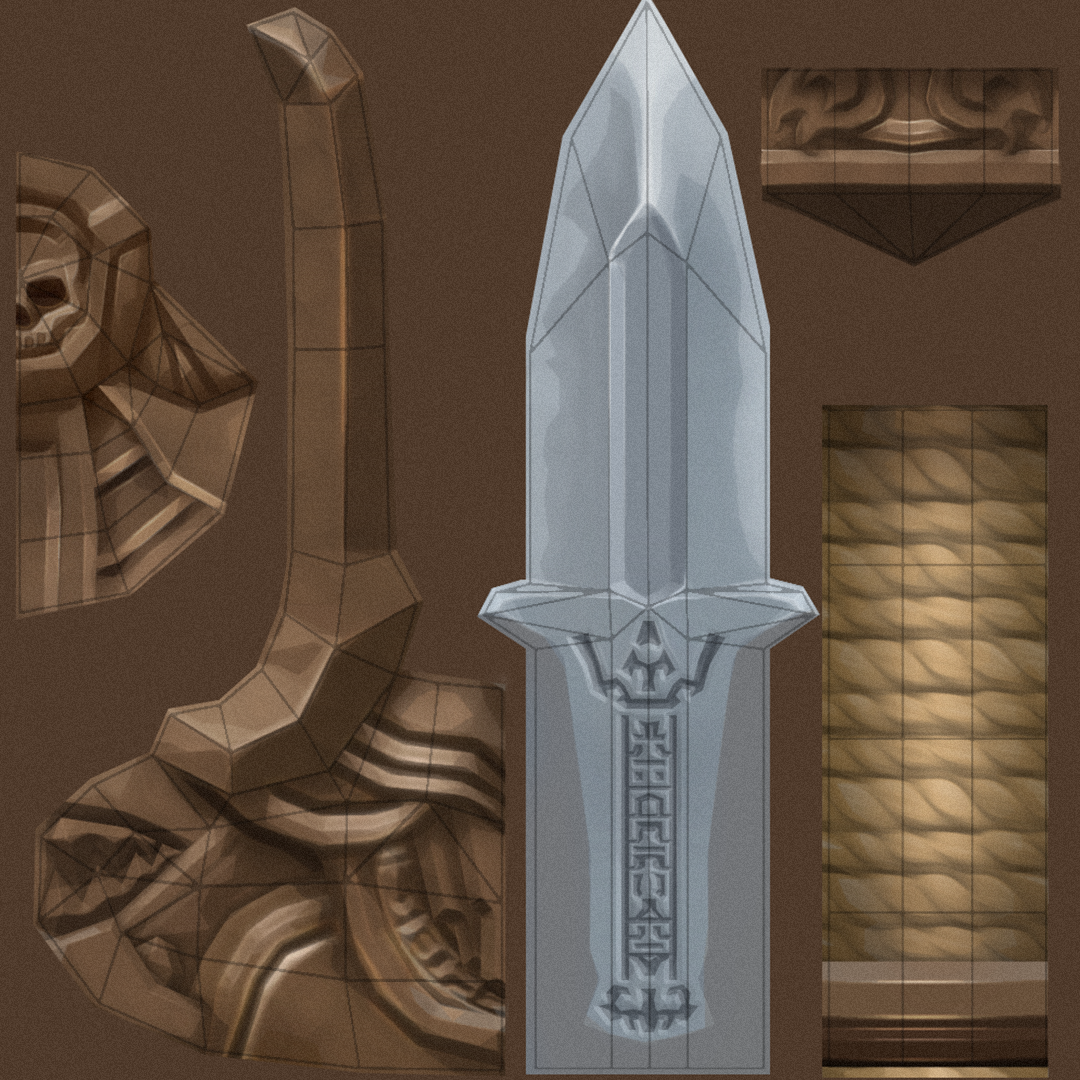 Concept art for some famous pop culture weapons in the style of Blizzard's Warcraft